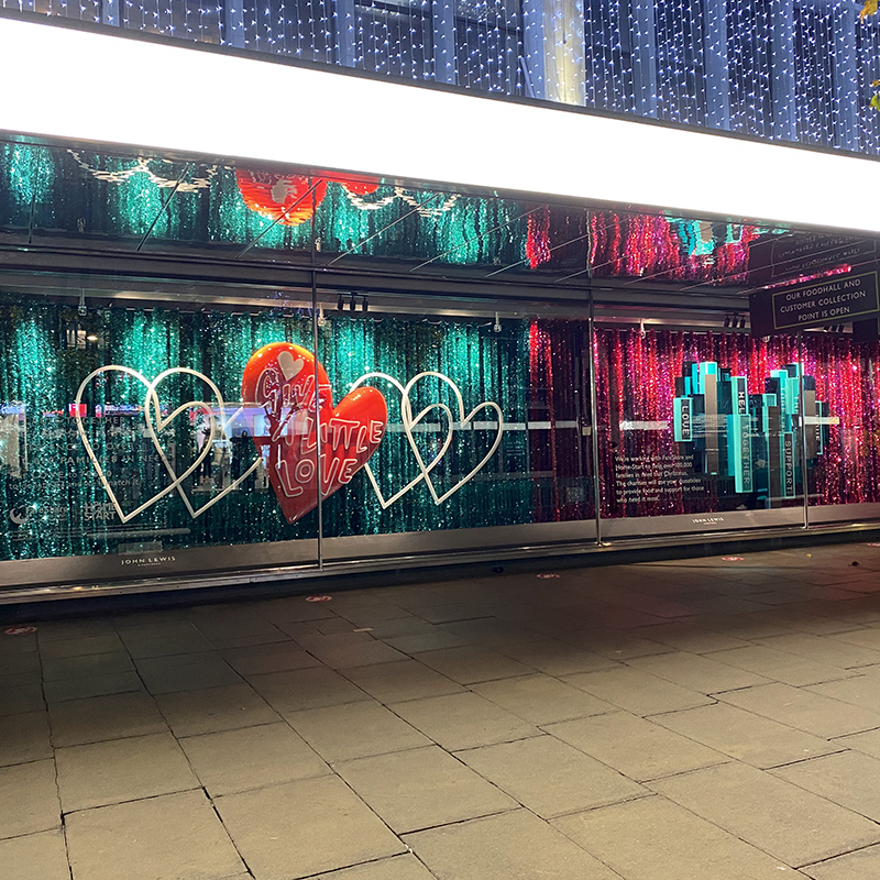 We captured the wonder of Christmas in this magical display of shimmering glitz. We predominantly used green and red to evoke the Christmas spirit and contribute to that glorious festive feeling.